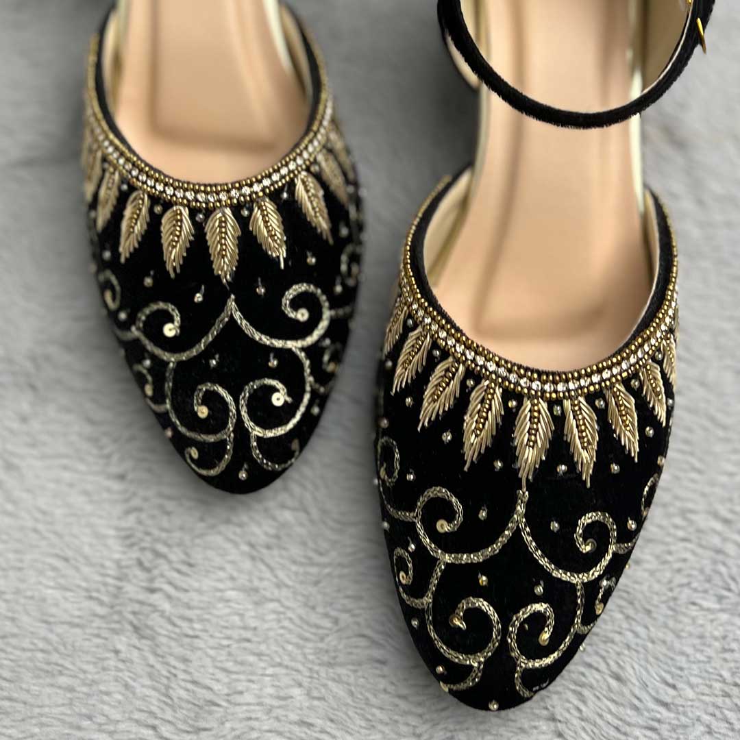 Elevate your style with our Black Embroidered Block Heels for Women, handcrafted by skilled artisans using premium materials. These block heels are designed for comfort and stability, making them perfect for daily wear, parties, weddings, or ethnic celebrations.