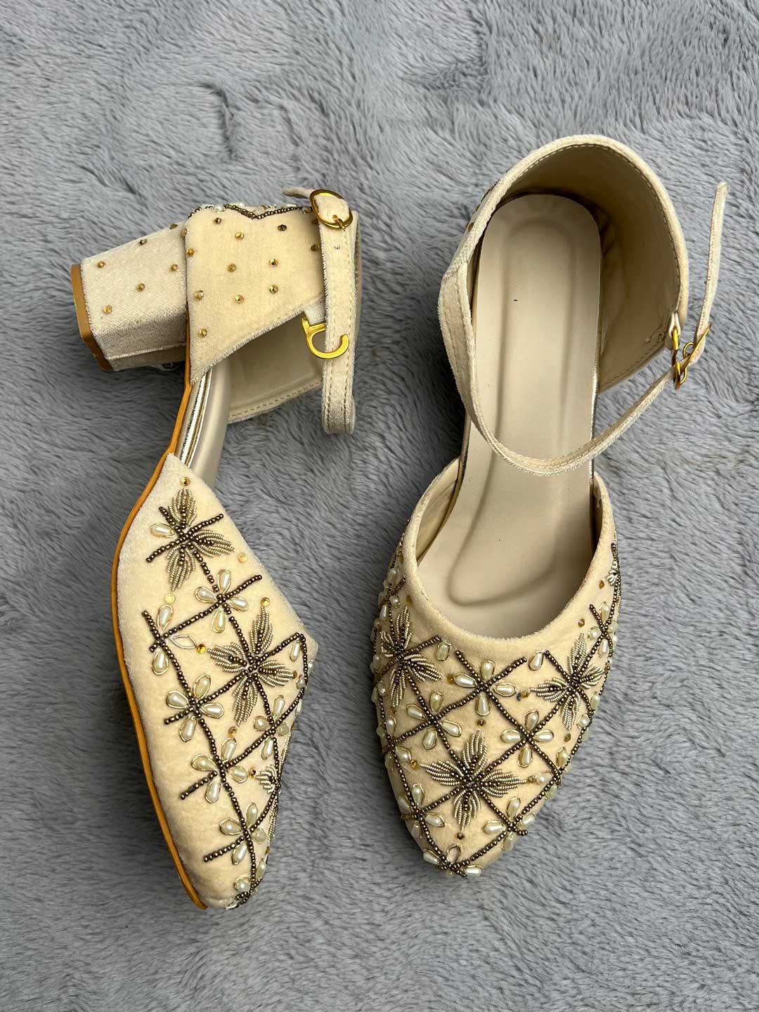 Step out in style with our Golden Embroidered Block Heels for Women, meticulously handcrafted by skilled artisans. Featuring intricate embroidery and a stable block heel, these heels are both stylish and comfortable, making them perfect for daily wear, parties, weddings, and ethnic occasions.